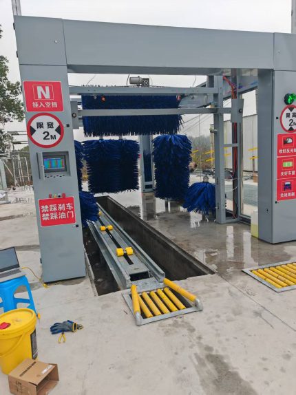 产品描述:隧道式连续洗车机AKSL-9F全自动洗车机在洗车时车子不动,而是随着传送带向前移动,因为其外形像隧道一样封闭,所以被称为隧道洗车机。 它的优点是:洗车机效率高,速度快,对于一天洗车400辆以上的用户来说比较实用。 产品描述:隧道式洗车机使用非常简单,对车身油漆的损伤也较小,近来在汽车服务业得到广泛的应用。 洗车机本身洗车速度非常快,可以进行连续不间断的洗车作业,洗一辆车大概需要2-3分钟,现在由于洗车速度的提高,一天可以洗400辆以上的车。 功能介绍:隧道式洗车机可对上千种中小型车辆的表面进行高压水洗、刷洗、风干等清洗作业。 车辆进入洗车房后,首先会进入自动牵引轨道,然后用高压水枪将车身表面的污垢冲洗干净,再使用泡沫洗包括超柔泡沫棉对车身表面进行细致全面的清洗。 随后会在汽车表面喷洒保护性水溶性蜡,以保护车身并赋予其靓丽的视觉效果。 最后风干。整个洗车过程都是由电脑控制刷子来洗车,节省了大量的人力。